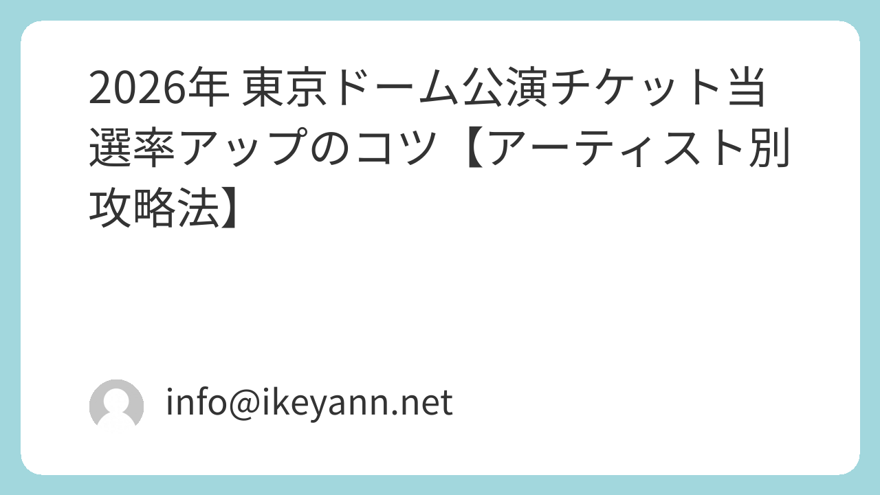 東京ドームで2026年に開催される人気アーティスト・アイドル公演は、先行抽選や一般発売でも即完売することが多いです。この記事では、チケット当選率を上げるコツや、アーティスト別の先行抽選の活用法をまとめました。